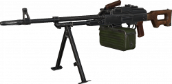 Light machine guns are man-portable automatic weapons intended to provide a squad or fire team with sustained suppressive fire while still being operated primarily by a single soldier. They are commonly fired from a bipod and may be fed by magazines or belts depending on the design, typically using rifle-caliber ammunition. In the Vietnam War era, light machine guns helped small units put effective automatic fire onto targets in vegetation and fighting positions without relying solely on heavier crew-served weapons. | |||
