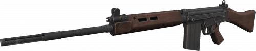 The L1A1 is a semi-automatic gas-operated with an internal piston, rifle. It utilized a staggered 20 round magazine that fired a 7.62x51 NATO cartridge.