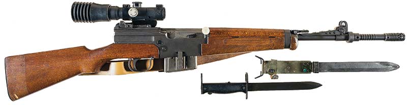 The initial MAS-49 semi-automatic rifle was produced in limited quantities (20,600 units), whereas the shorter and lighter variant, the MAS-49/56, was mass-produced (275,240 units) and issued to all branches of the French military. Overall, the MAS-49 and 49/56 rifles gained the reputation of being accurate, reliable and easy to maintain in adverse environments. All the MAS-49 and 49/56 rifles feature a rail on the left side of their receivers to accommodate a designated rifle scope.